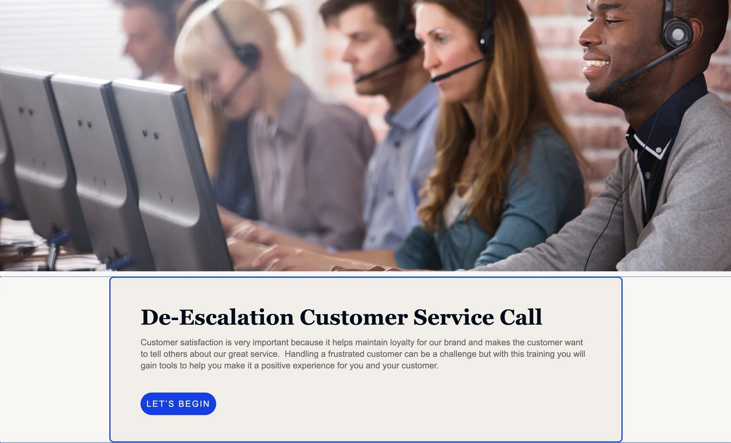 Building Rapport Experience the project De-Escalation Service Call Experience the project (desktop only)